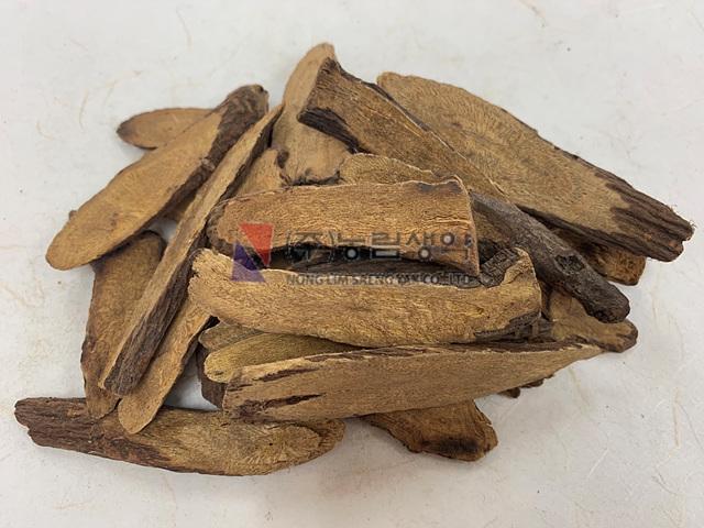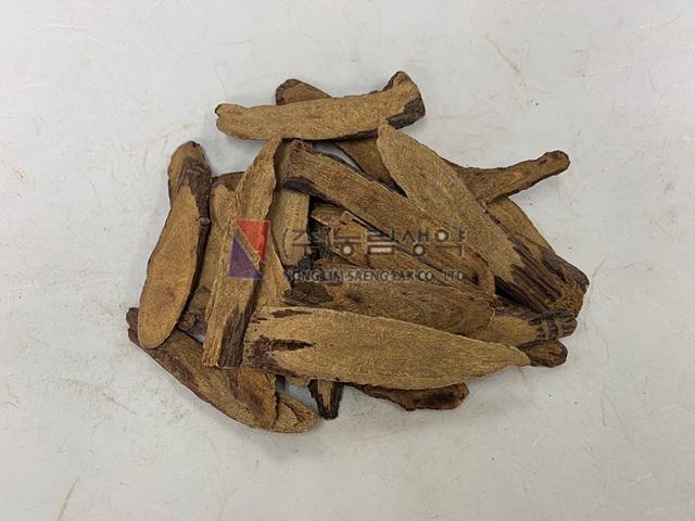 성상 | 이 약은 뿌리 및 뿌리줄기로 고르지 않은 유원형 또는 타원형이며, 횡단면은 황갈색 〜 어두운 갈색을 띤다. 약간 탄 냄새가 나고 맛은 달다. |