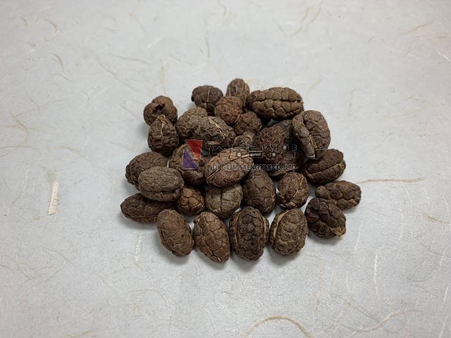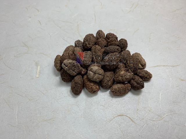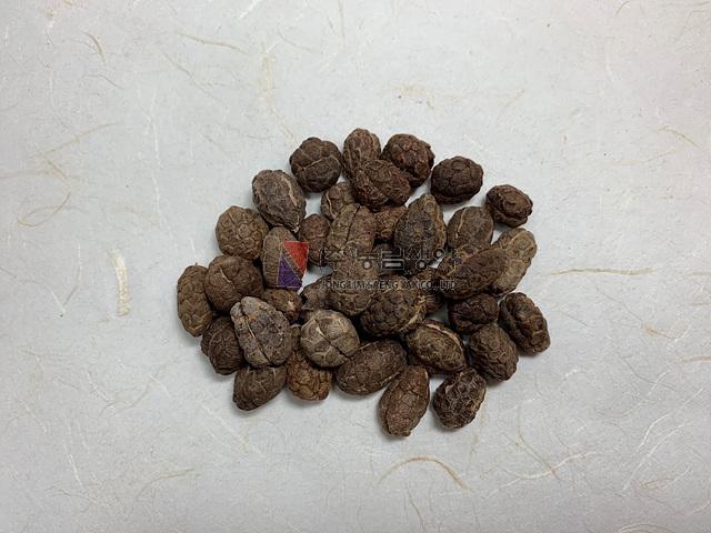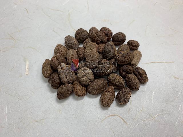 이 약은 열매로 타원형 또는 난원형이고 뚜렷하지 않은 세 개의 모서리가 있으며, 길이 15 20 mm, 지름 10 15 mm이다. 바깥면은 연한 갈색이고 가시 모양의 돌기가 밀생하며 위쪽에는 화피 자국이 있고 아랫쪽에는 열매꼭지가 남아있다. 열매껍질은 얇고 부드럽다. 씨는 밀집하여 덩어리를 이루고 3개의 밋밋한 모서리가 있으며, 중앙은 흰색의 격막에 의해 3 쪽으로 나뉘어지며 매 쪽에는 씨가 5 26개씩 들어있다. 씨는 불규칙한 다면체로 지름 약 3 mm이며, 바깥면은 적갈색 또는 어두운 갈색이고 바깥층에는 연한 갈색이고 막질인 헛씨껍질이 덮여 있다. 질은 단단하고 씨젖은 회백색이다. 이 약은 특유한 향기가 있으며 맛은 맵고 청량감이 있으며 약간 쓰다