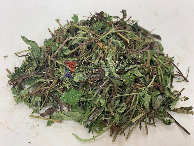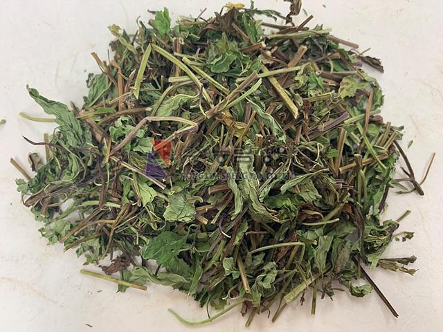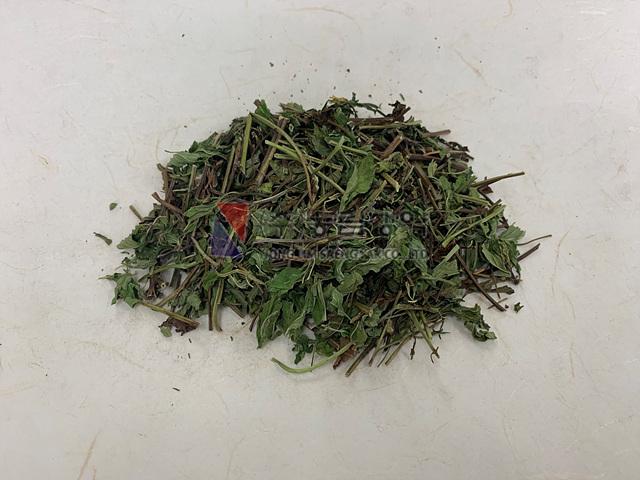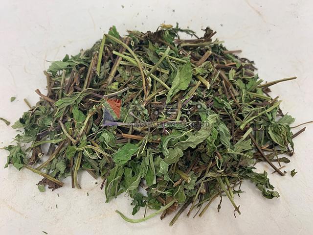 이 약은 지상부로 줄기와 여기에 마주 난 잎으로 되어 있다. 줄기는 네모기둥 모양이, 길이 15 40 cm, 지름 0.2 0.4 cm이다. 바깥면은 자갈색 또는 연한 녹색이고 모서리 근처에는 짧은 털이 있으며 마디사이는 길이 2 5 cm이다. 질은 약하다. 잘린 면은 흰색이고 수부는 가운데가 비어 있다. 잎은 마주나며 짧은 잎자루가 있고, 잎조각은 찌그러지고 함께 말려있다. 온전한 잎을 펼쳐보면 긴 타원형 또는 달걀모양이고, 길이 2 7 cm, 1 3 cm이다. 잎의 윗면은 진한 녹색이고, 아랫면은 회녹색이며 드물게 짧은 털이 덮여있고, 오목한 점모양의 선린이 있다. 꽃은 윤산화서로 액생하며, 꽃받침은 종 모양이고 끝은 5개로 갈라지며, 꽃부리는 연한 보라색이다. 이 약은 손으로 비비면 특유하게 맑은 향기가 나며, 맛은 맵고 시원하다.